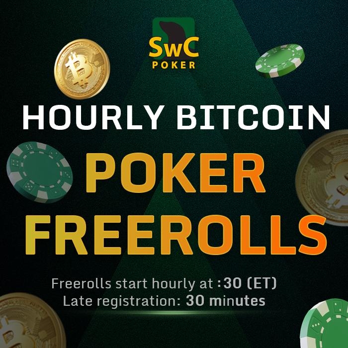 SwC Poker just made freerolls part of your daily routine. A new zero-buy-in tournament launches at :30 past every hou...